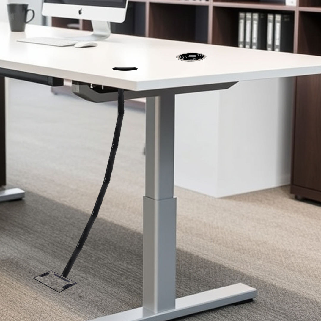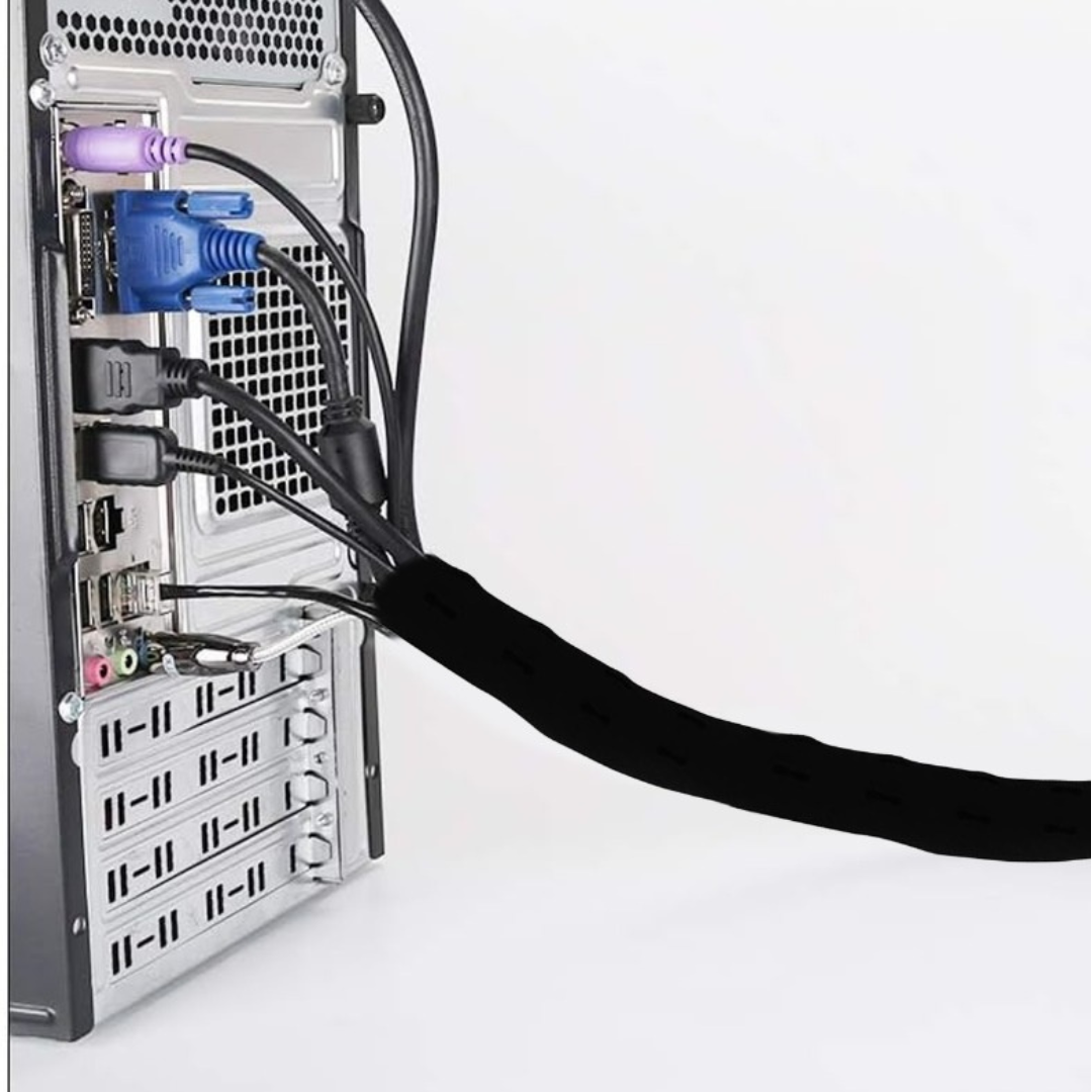 The Cable Wrapper Cable Management Spine is designed to organize and conceal cables across a variety of desk systems, offering a clean, efficient solution for cable management. Available in 1-meter & 2-meter lengths, the Cable Wrapper features cable cutouts at every 50 mm interval, allowing cables to be accessed and managed from each section, ensuring a neat and organized setup. The adjustable hook-and-eye straps make it easy to fit desks of various heights, providing versatility for different workspaces. Cables can be quickly managed by simply opening the Velcro, placing them inside the spine, and re-fastening, resulting in a streamlined, clutter-free workspace. This practical solution helps maintain a tidy, professional appearance while enhancing the functionality of any office environment.