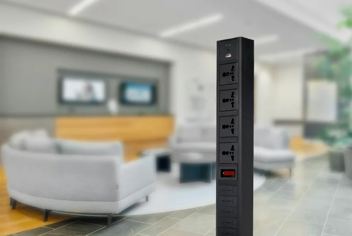 - Pull when you need — Vertical lift-up brings Socket, DATA, and AV Access to eye level