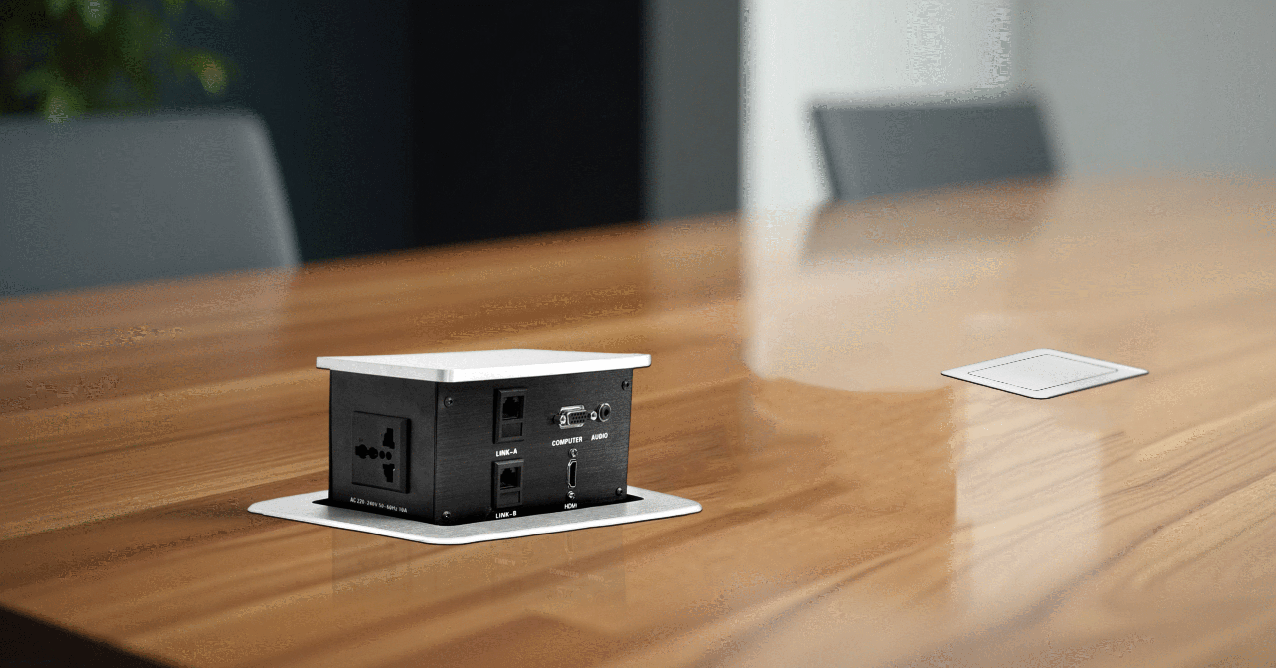- Smart Connect keeps boardrooms and meeting rooms tidy with a push-open system that hides all Sockets when not in use, ensuring a clutter-free and organized workspace