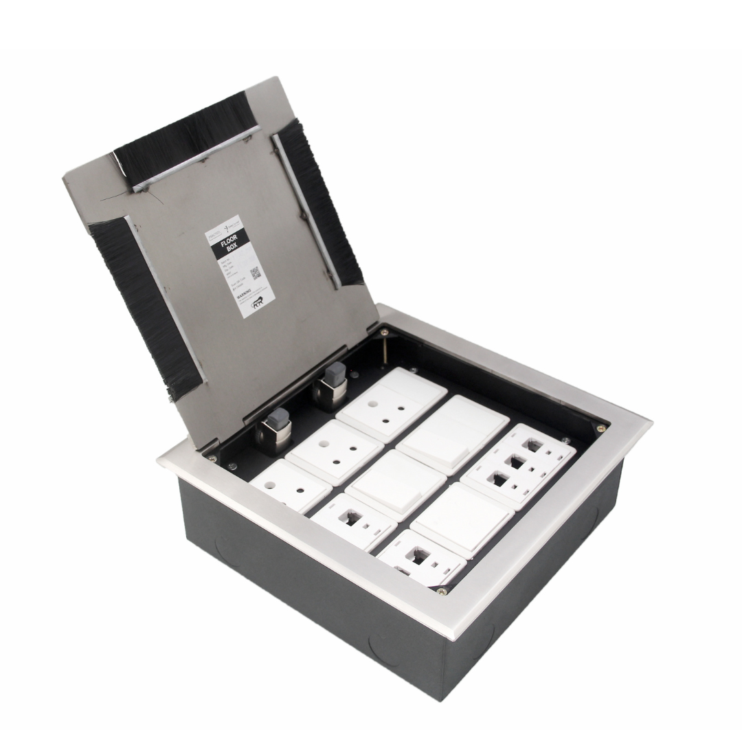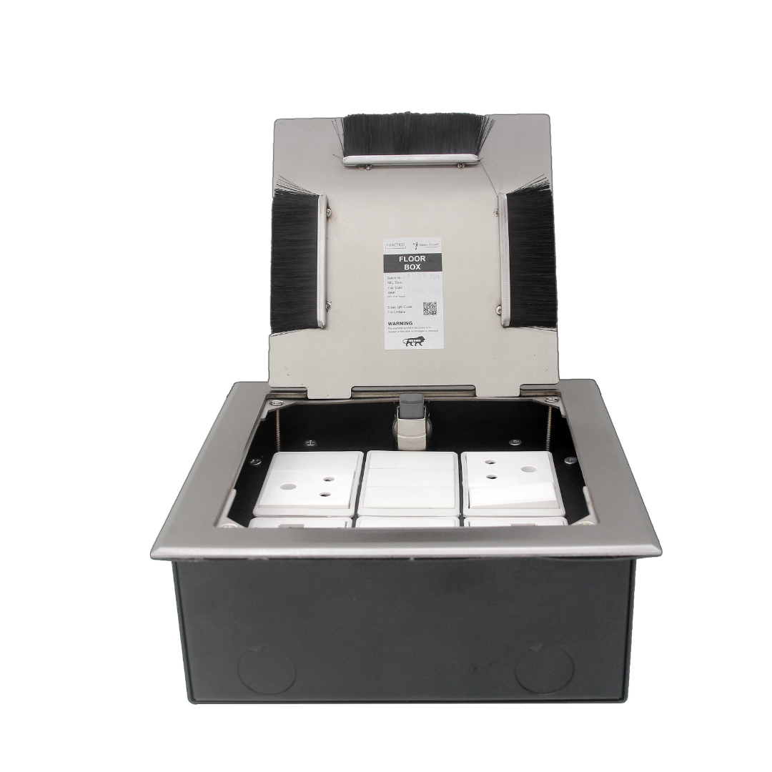 - Easy opening with three-sided brushes allows access to sockets from any side of the floor box
